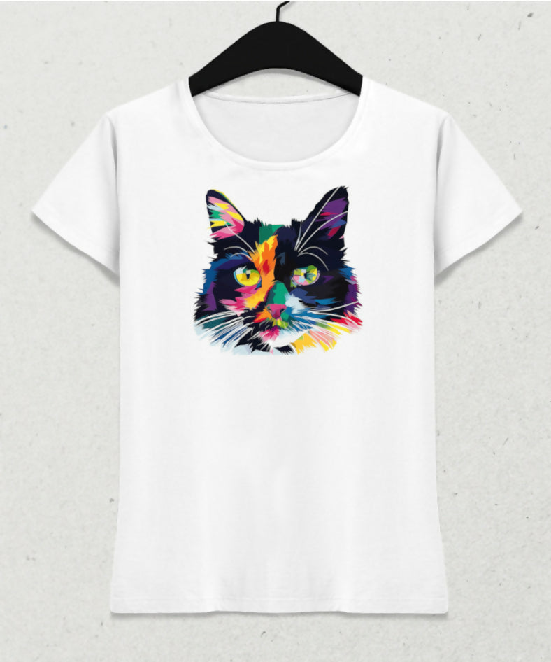 Renkli Kedi Pop Art - Kadın Tişört