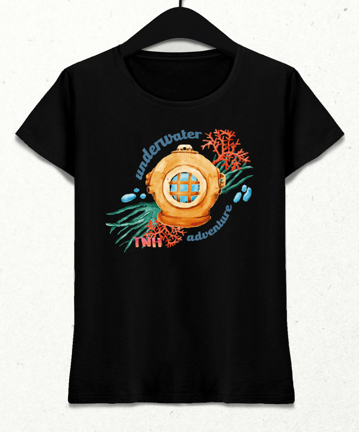 Dalış severler için vintage başlık ve mercan detaylı tasarım.