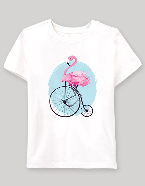 flamingo on bike Çocuk tshirt