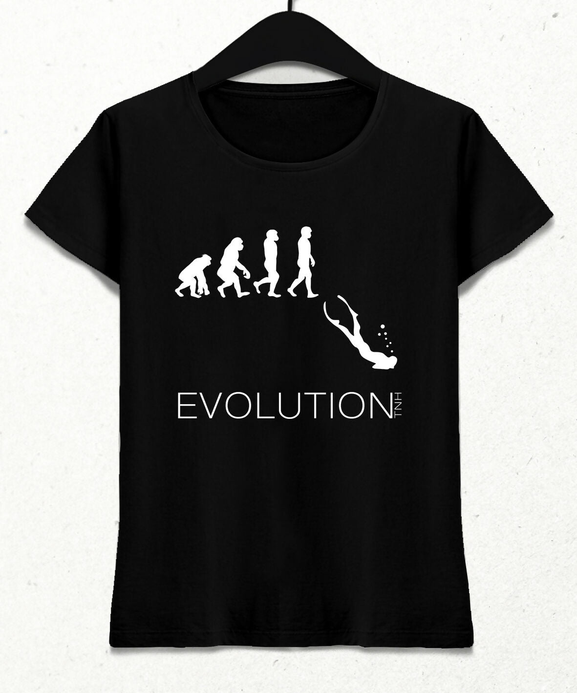 Serbest dalış severler için "Evolution" tasarımlı tişört.