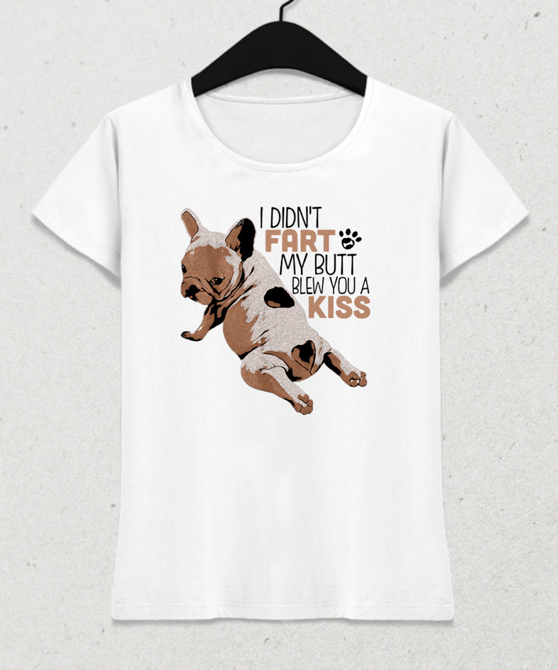 French bulldog kiss kadın tişört