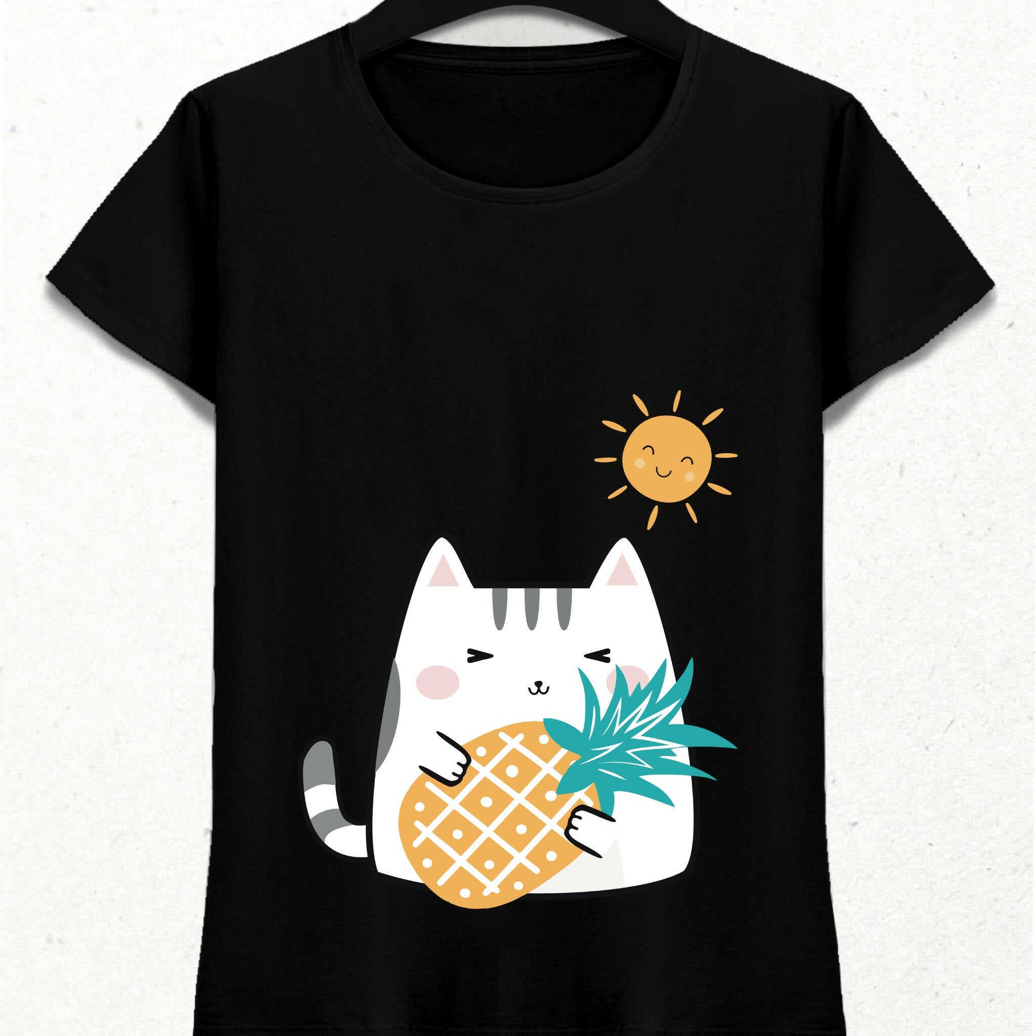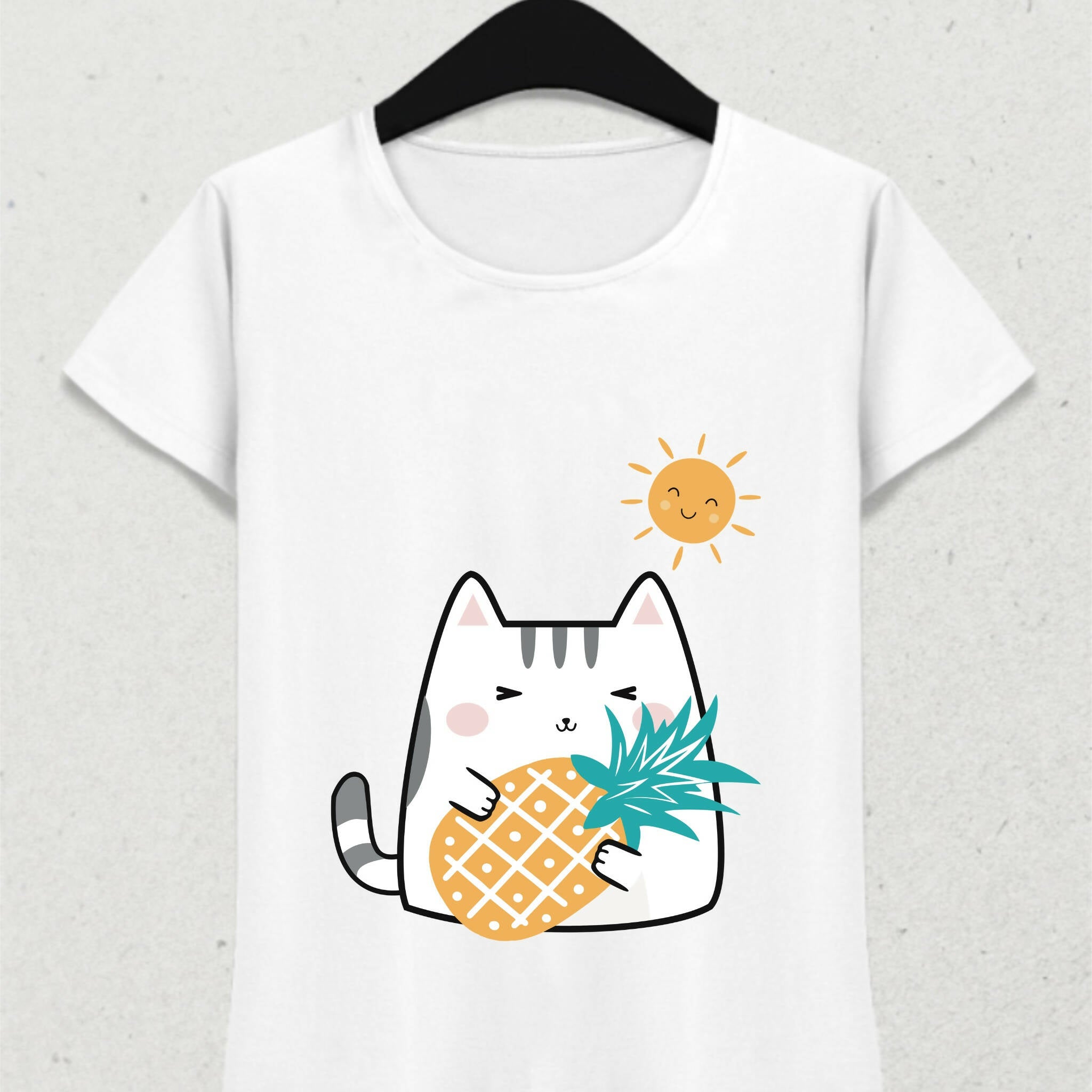 Kedi Güneş Ananas ve Yaz Temalı Tshirt