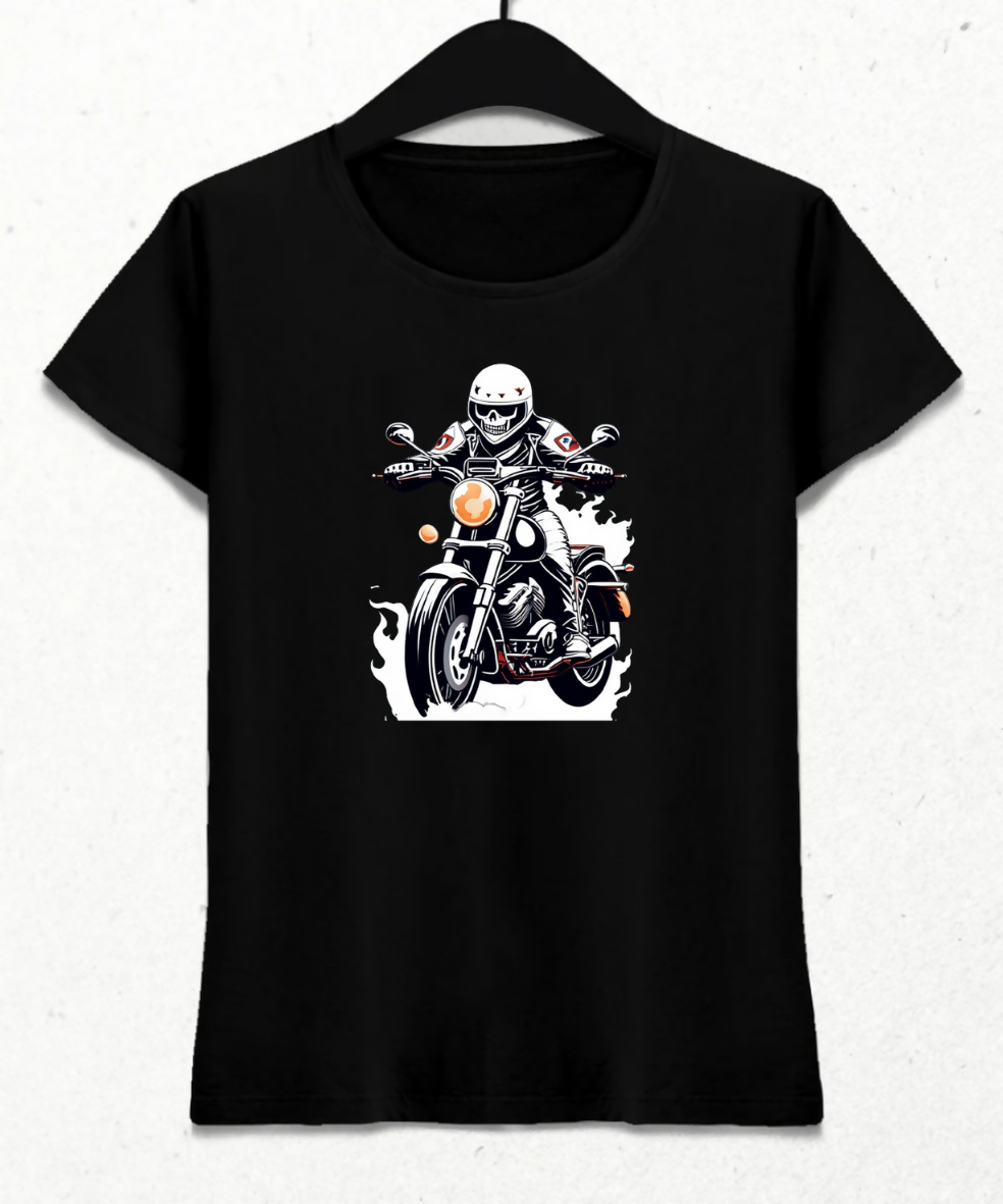 Motosikletli İskelet Kadın Tişört