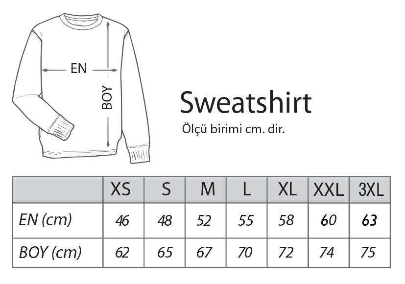 Tüm sweatshirtler Direct-to-Garment (DTG) teknolojisi ile basılır. Doğrudan tshirt üzerine boya püskürtülerek yapılan baskılarda plastik hissi kesinlikle olmaz, yıkama da dökülme, çatlama yaşamazsınız. %70 pamuk %30 polyester
