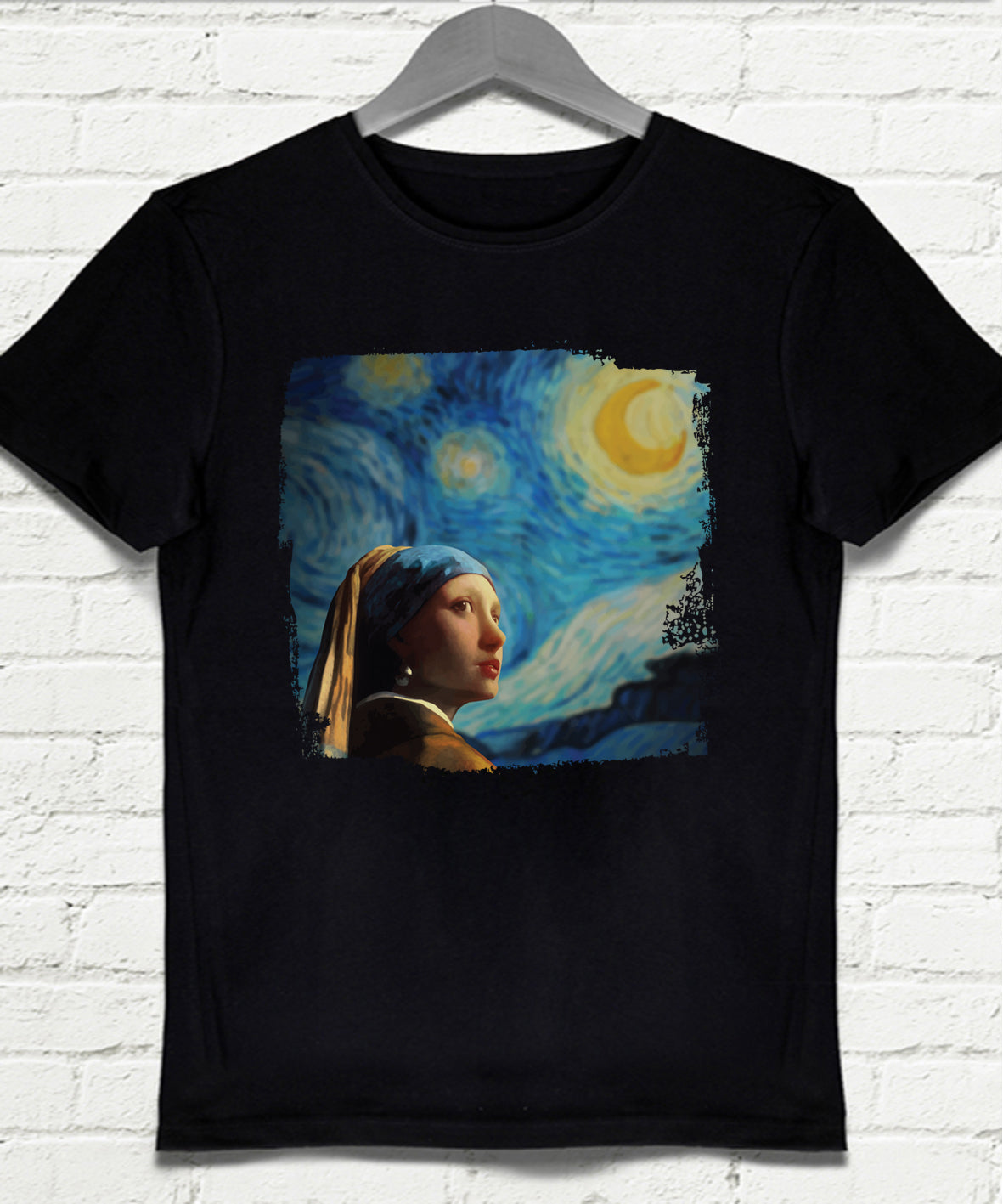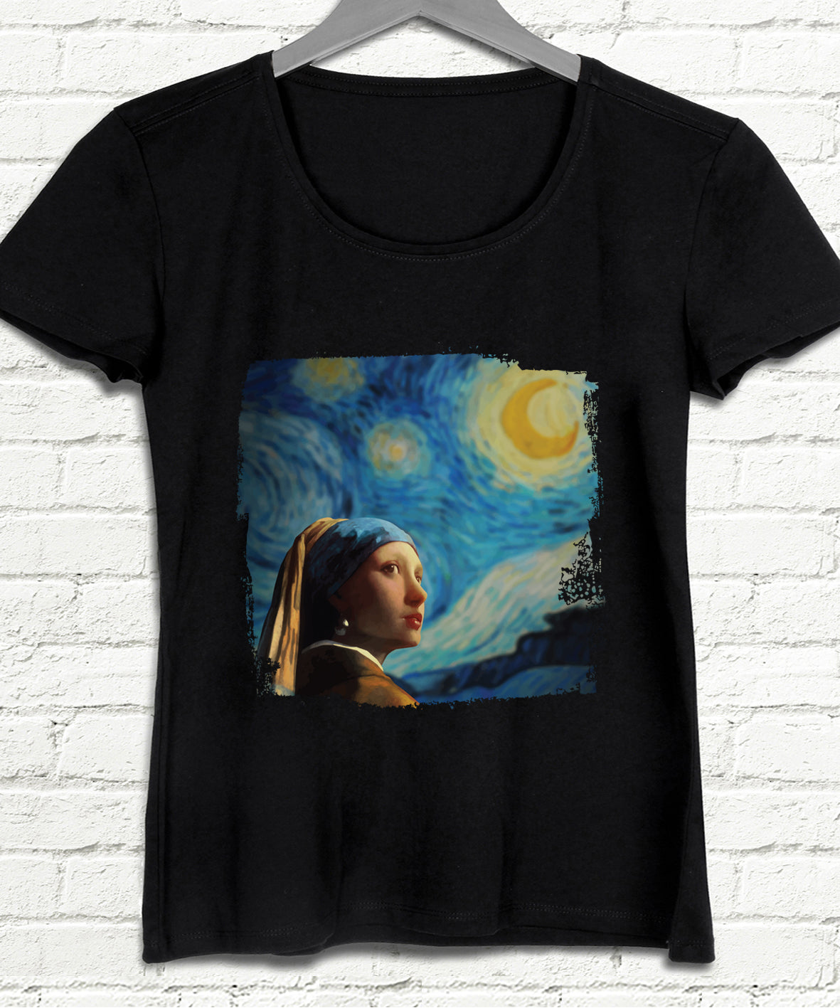 Girl with Starry Night Siyah Tişört